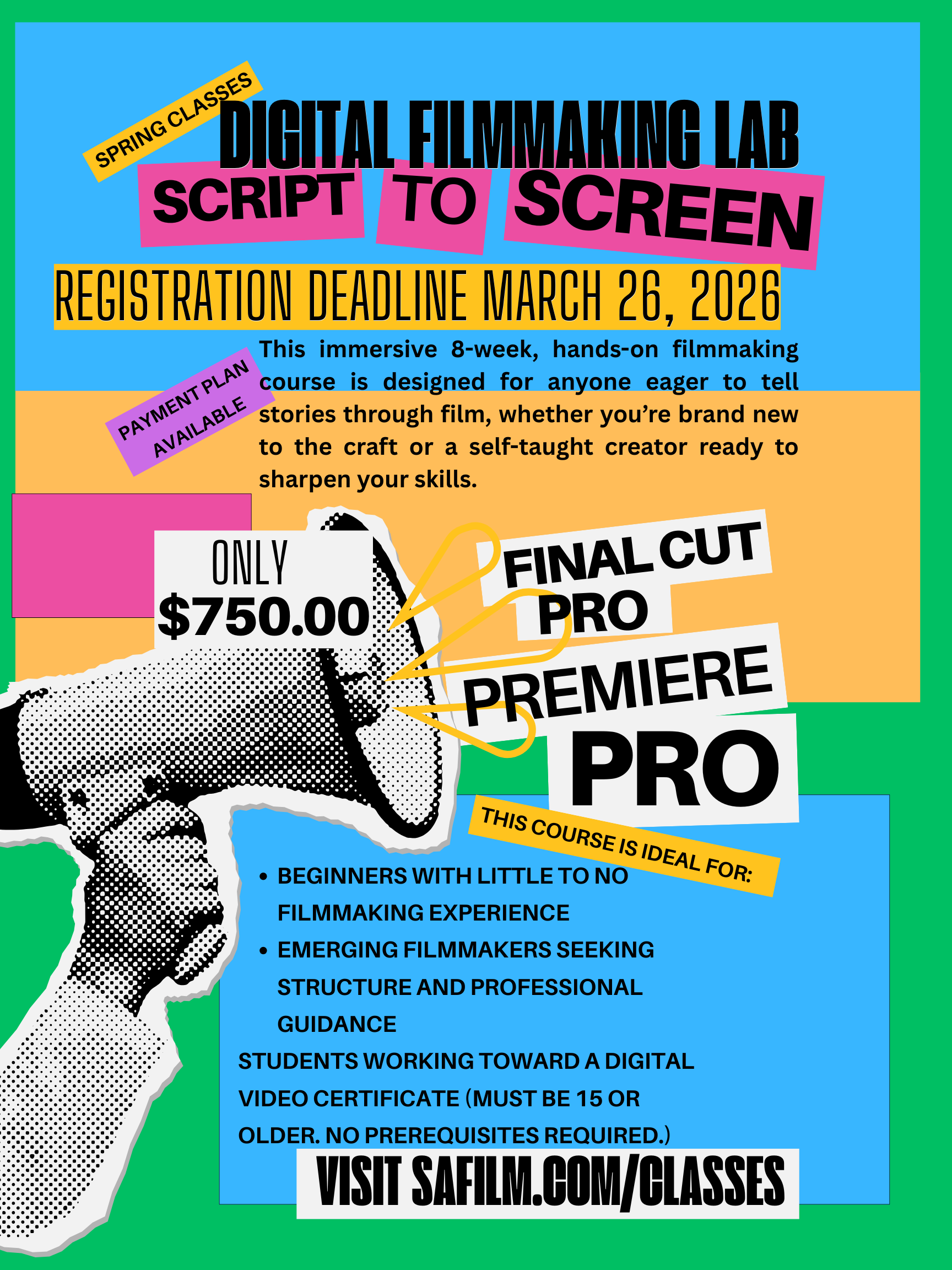 This immersive 8-week, hands-on filmmaking course is designed for anyone eager to tell stories through film, whether you’re brand new to the craft or a self-taught creator ready to sharpen your skills.